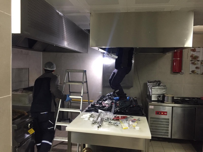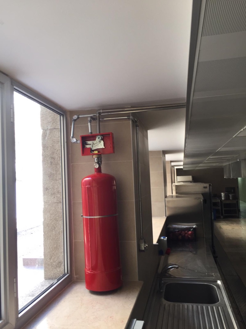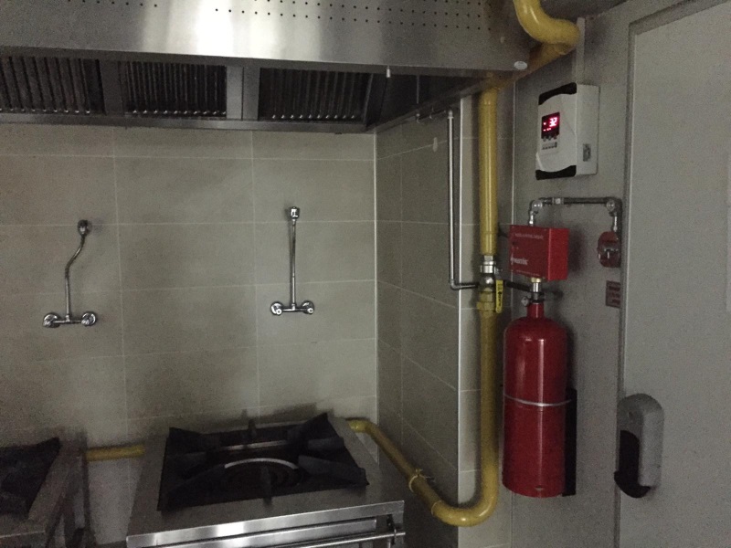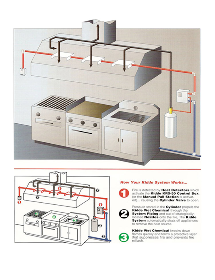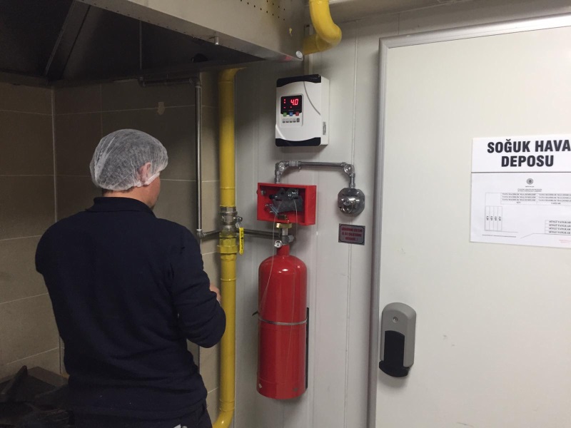 Restaurant, Lokanta, Otel, Fabrika ve kurumlarda bulunan mutfaklarda kullanılan davlumbazların uzun süre yağlı bırakılmaları sonucu biriken yağlar çeşitli durumlarda tutuşup alev alabilmektedir. Meydana gelen Davlumbaz yangınlarını söndürmek zordur. Otomatik Davlumbaz Söndürme sistemi meydana gelebilecek yangınları en kısa sürede algılayarak çok kısa zamanda söndürülmesi için en pratik, sağlıklı ve kesin çözüm yoludur. Otomatik Davlumbaz Söndürme Sistemi üzerinde bulunan kırmızı algılama hortumu, alevi algıladığı noktada söndürme sistemini devreye sokmaktadır. Ayrıca sistem üzerinde bulunan boşaltma butonu ile manuel olarak basılarak da çalıştırılabilmektedir. 1 - MANUEL (EL İLE) KONTROL MEKANİZMASI Elektrik ve gaz sistemi kesme özelliği Sistemi harekete geçiren itici gazın doluluğunu gösteren manometre Sistemi manuel boşaltma butonu 2 - TESİSAT ve MONTAJ EKİPMANLARI D-R Pişirici ocak koruma nozulu D-G Kömürlü elektrikli ızgara koruma nozulu D-F Fritöz koruma nozulu D-A Baca ve davlumbaz filtre koruma nozulu 3 - BASINÇLI HASSAS ALGILAMA SİSTEMİ D-det algılama kablosu, yangını algılar ve sistemin çalışmasını sağlar. 1/2 - 3/4 ve 1" ebatlarda galvaniz veya paslanmaz çelik boru ve bağlantı malzemeleri 4 - D-CON KONTROL MEKANİZMASI Algılama sistemi yangını algıladığı anda D-con kontrol mekanizmasını tetikleyerek azot gazı ile basınçlandırır. İtici azot gazı ile basınçlandırılan D-con, söndürme kimyasalı olan Fire Eraser Sıvı Kimyasal Söndürücünün serbest kalmasını sağlar. Serbest kalan söndürücü kimyasal, çelik borulardan geçerek nozullar vasıtasıyla yangını söndürür.